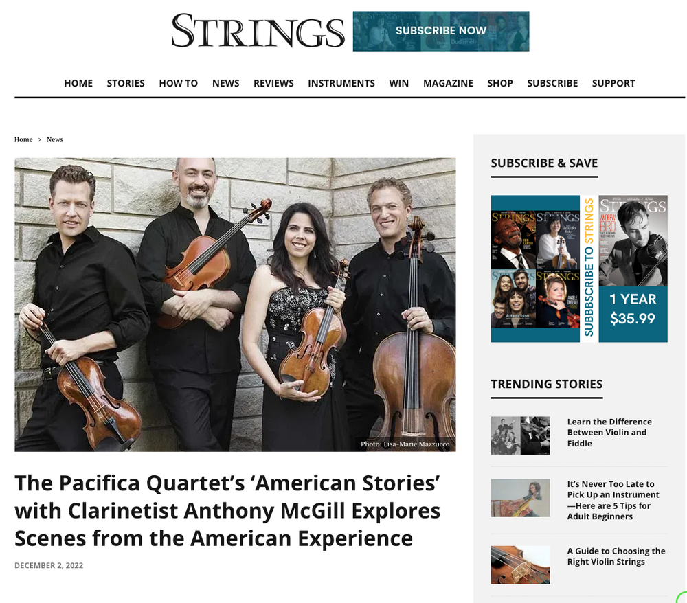 Over the course of its 28 years, the Pacifica Quartet has tackled many musical challenges, testing its already impressive core skill sets in countless ways. But until now, with the release of the extraordinary American Stories—a breathtaking collaboration with clarinetist Anthony McGill—the two-time Grammy-winning ensemble has never been asked to sound like Muhammad Ali pummeling an opponent in the boxing ring.